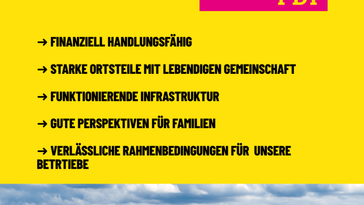 Als lebenswerte und finanziell handlungsfähige Gemeinde mit starken Ortsteilen, funktionierender Infrastruktur sowie guten Perspektiven für Familien, Betriebe und Ehrenamt.